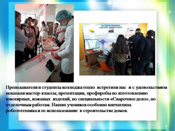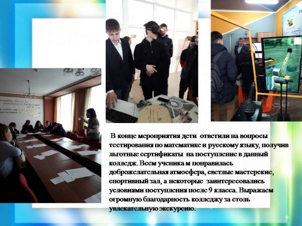 21.04.2018г. перед учениками 9 –х классов нашей школы в рамках профориентационной работы приветливо распахнули свои двери транспортно-технологический колледж г.Караганды и КГУ "…