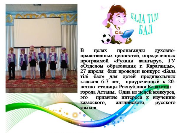 В целях пропаганды духовно-нравственных ценностей, определенных программой «Рухани жанғыру», ГУ «Отделом образования г. Караганды», 27 апреля был проведен к…