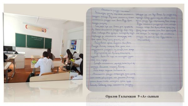 3 ақпан күні 9 "А" сынып оқушылары "Мемлекеттік рәміздер - мақтанышым" тақырыбында шығарма жазды.