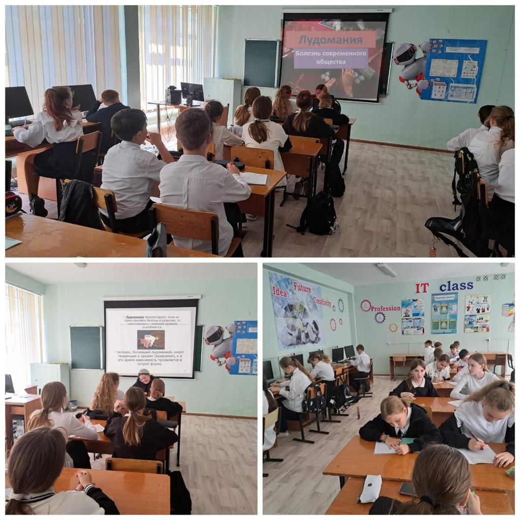 Салауатты өмір салтын насихаттау және тәуелділіктен сақтандыру мақсатында құмар ойындар мен лудоманияның қаупі жайында 5-6-сыныптарында сынып сағаттары өтті.