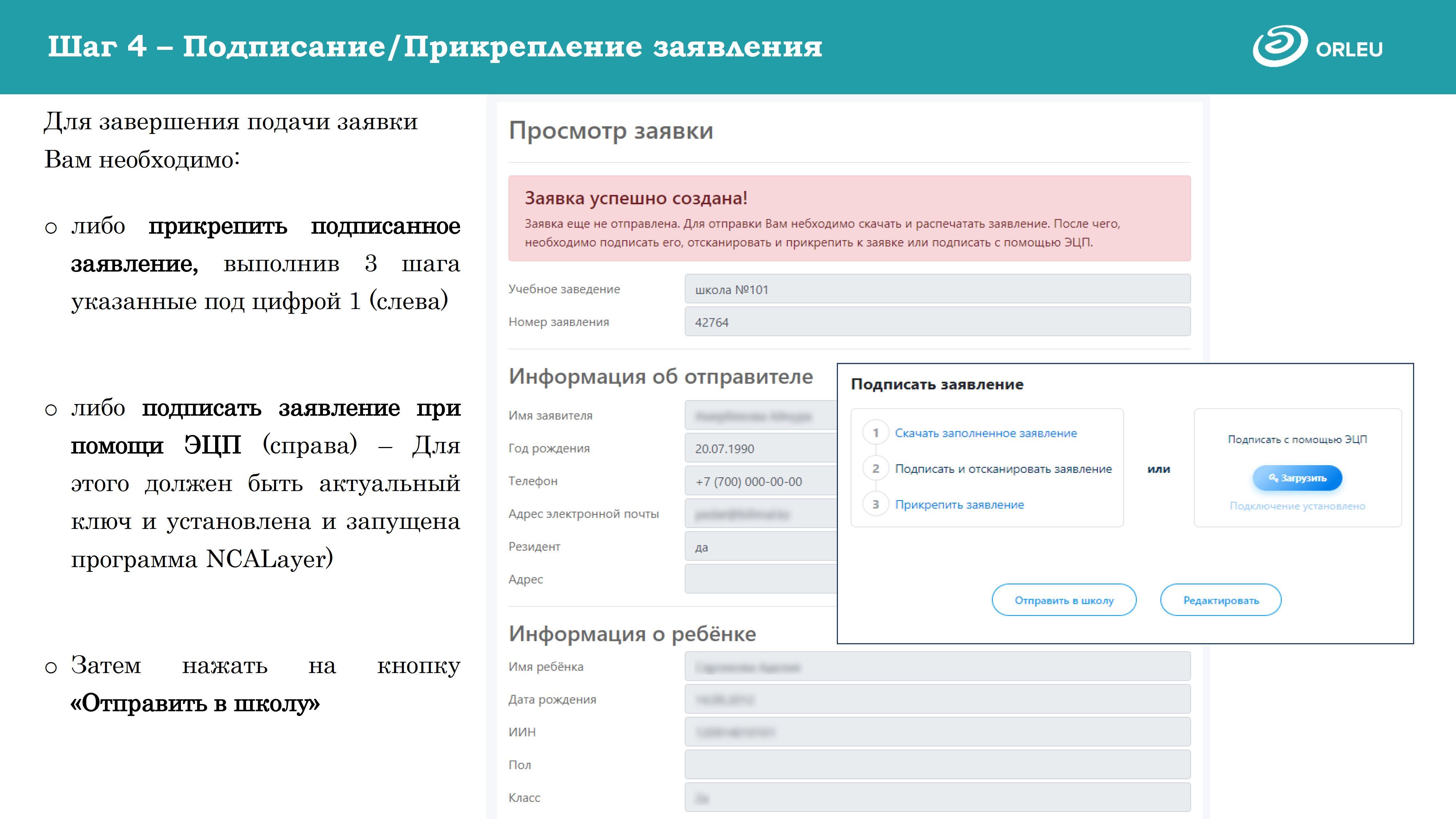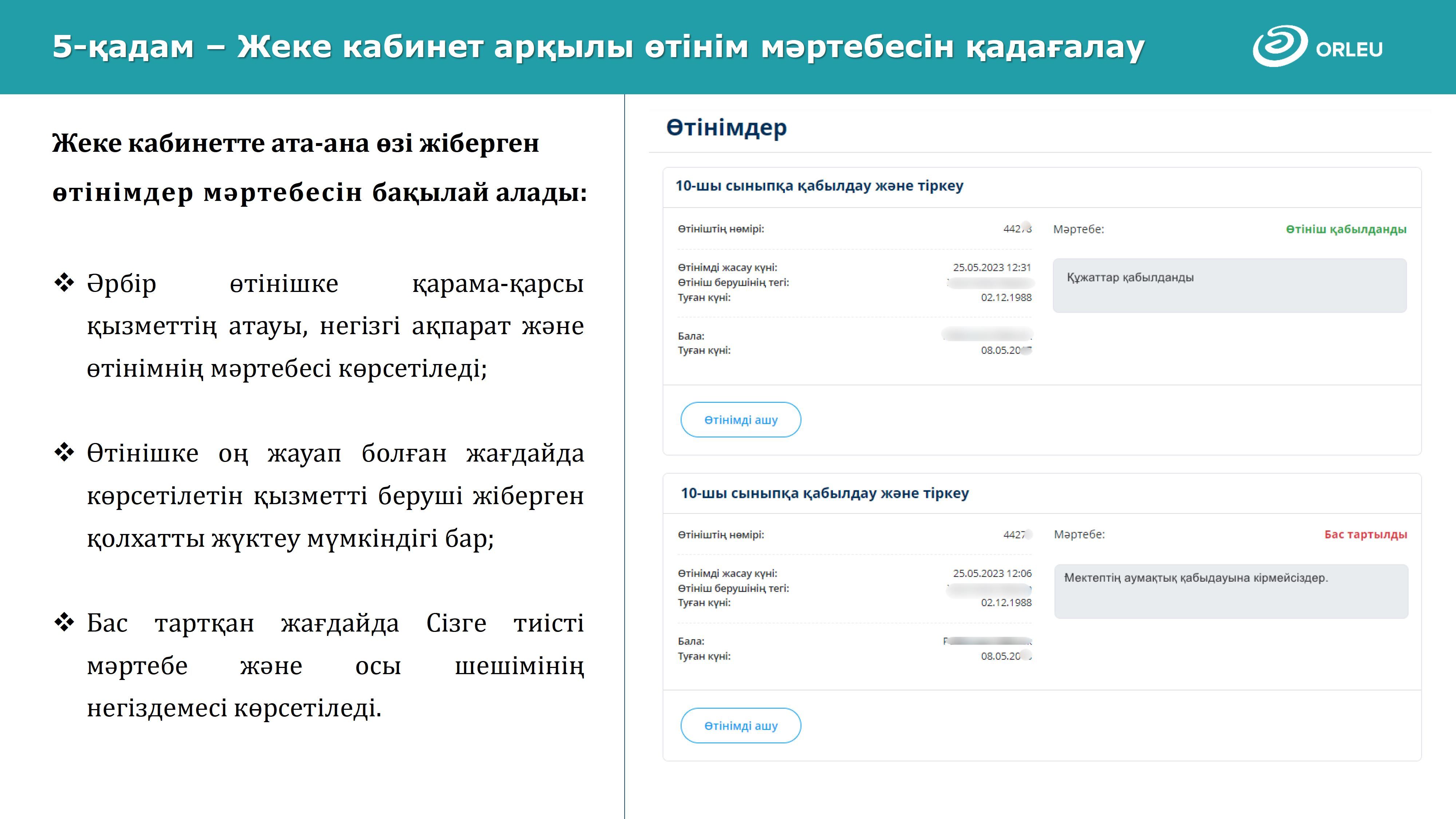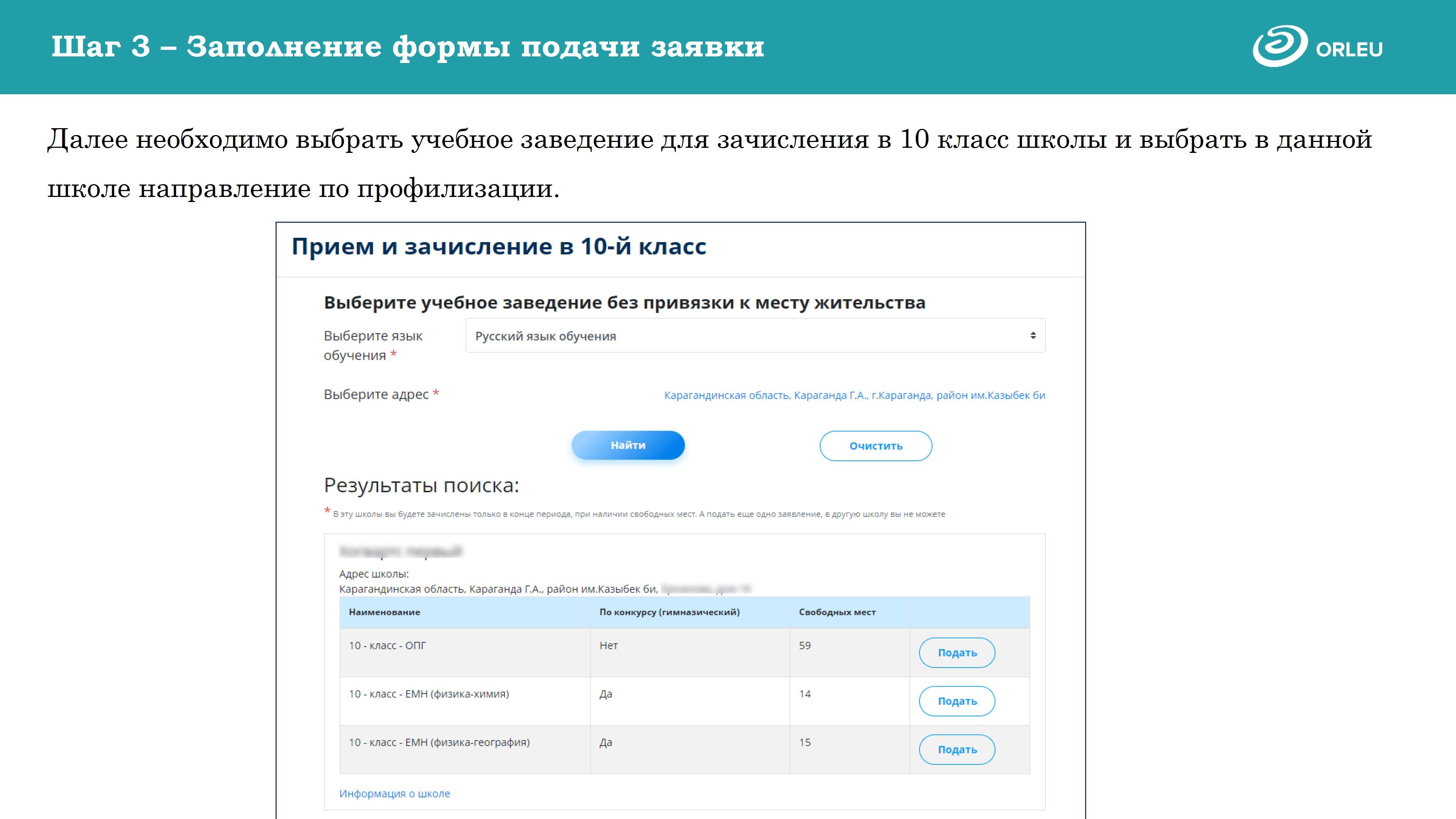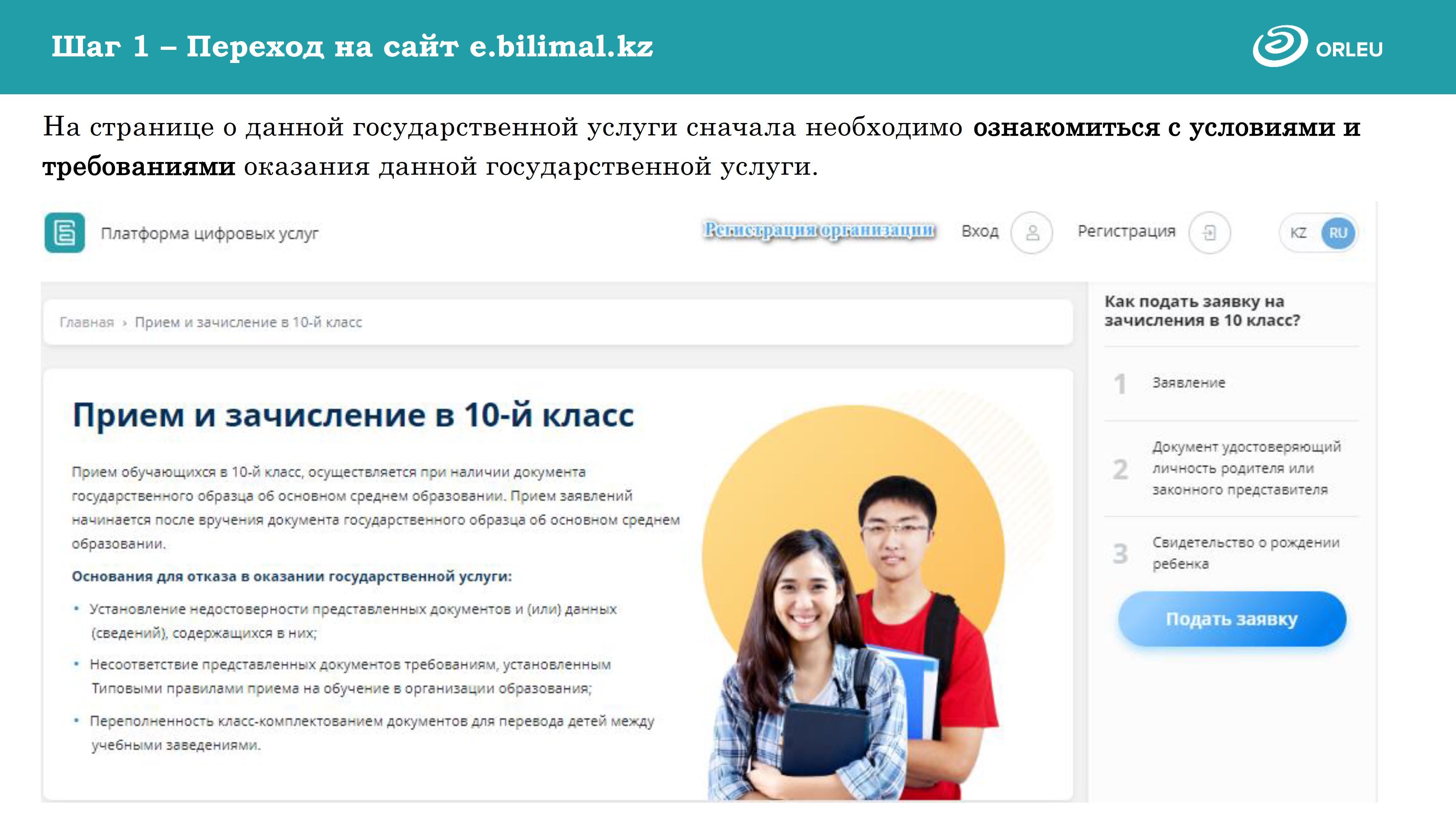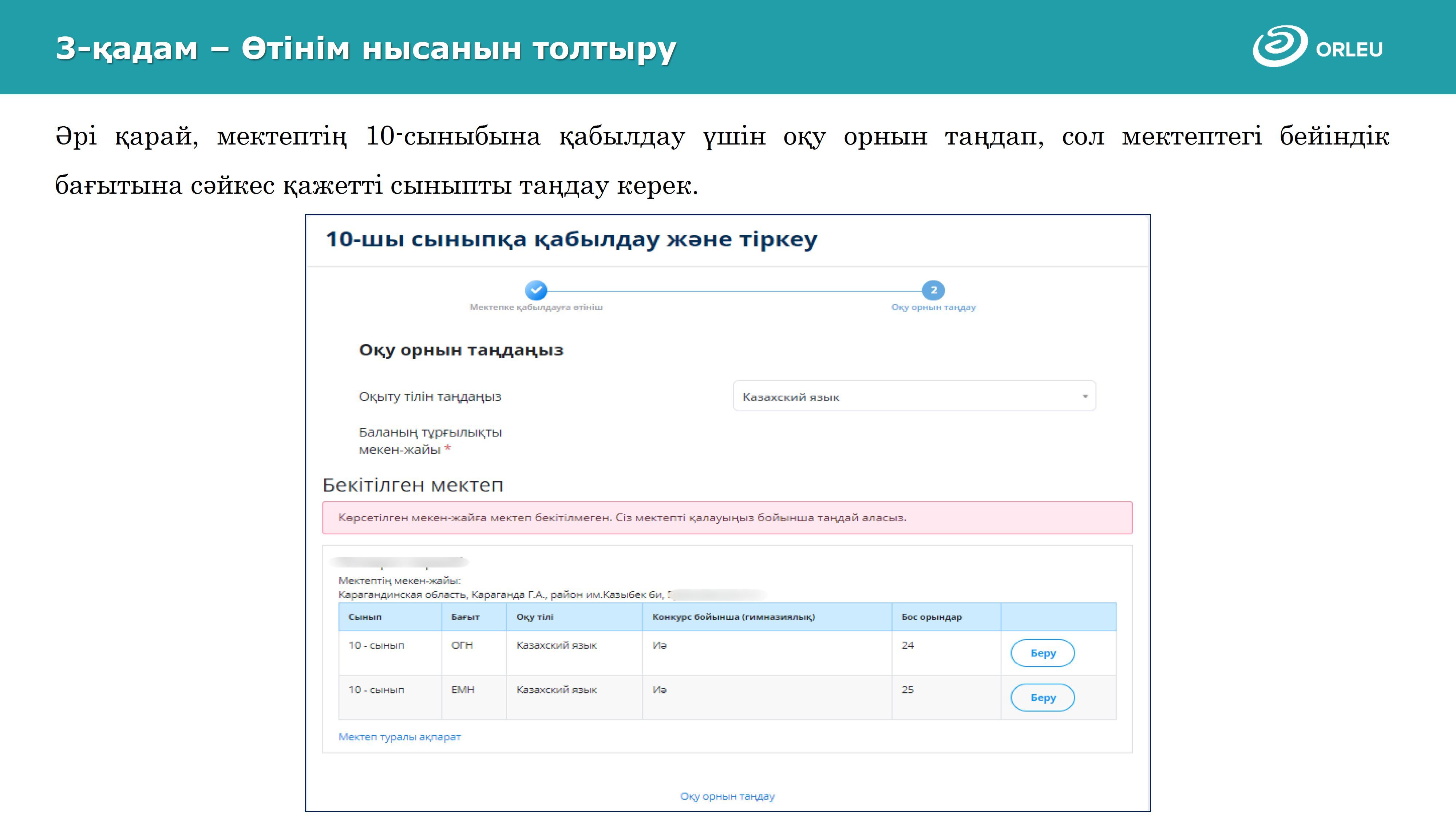 Сіз балаңызды 10-сыныпқа қабылдау үшін мектепке электронды өтініш бере аласыз