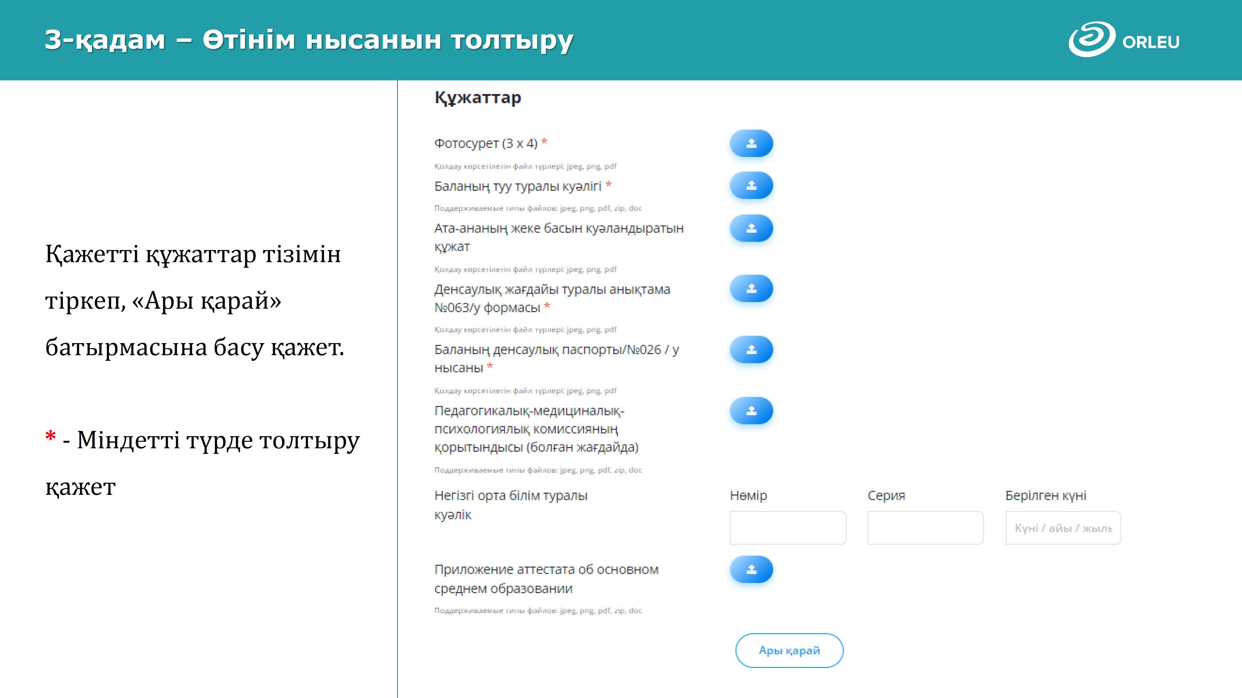 Баланы 10-сыныпқа қабылдау үшін өтінішті ата-аналары немесе өзге де заңды өк…