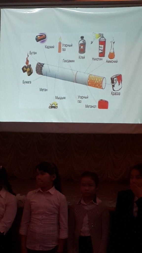 Потом ведущие линейки в доступной форме, с демонстрацией красочной презентации рассказали о вреде курения и во…