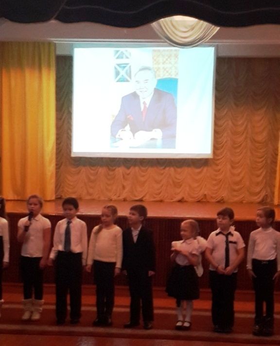 Как обычно линейка началачь с исполнения Гимна РК, после чего директор школы Капасова А.К. поздравила всех ребят, учителей и гостей с Днём Первого Президента РК. А дети из 2 класса подготовили…