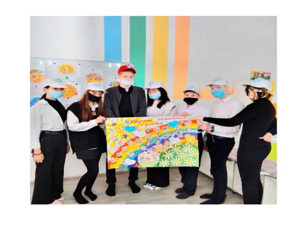 9 "Г" сыныбының қыздарынан құралған еріктілер тобы бастауыш сынып оқушыларына арналған "Балалар жылы-2022" атты флешмоб ұйымдастырды.
