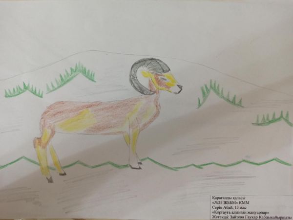 Экологиялық сауаттылықты арттыру апталығы аясында 6 "А" сынып оқушылары "Қазақстан Қызыл кітабына" енген, ерекше қорғауға алынған жануарлардың суреттерін салды. Мұғалім: Зайтов…