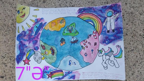 11.10.-16.10.2021ж. аралығында "Шеберлер әлеміне саяхат"атты эстетикалық сауаттылық апталығына байланысты, "Әлем балалар көзімен" тақырыбында 7-8 сыныптар постерлер салды.