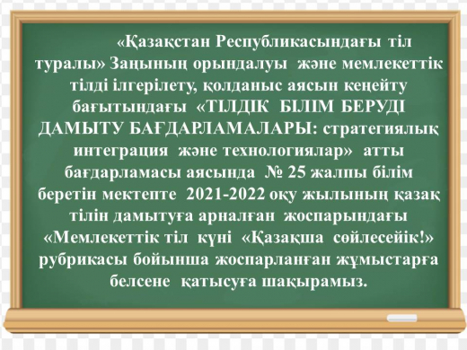 7 сентября в честь Дня языков Республики Казахстан в рамках школьной декады «Тіл мерейі – ел мерейі» в 7 «Г» классе был проведен соревновательн…