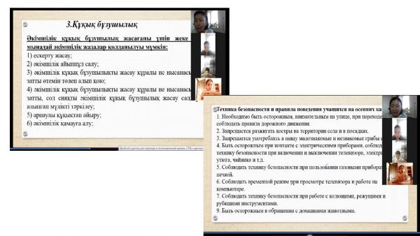 4 қараша күні 9 "А" сыныбында " "Қауіпсіздік ережелерін сақтай білейік!" және "Құқық бұзушылықтың алдын алу" тақырыптары төңірегінде сынып сағаты өтті.