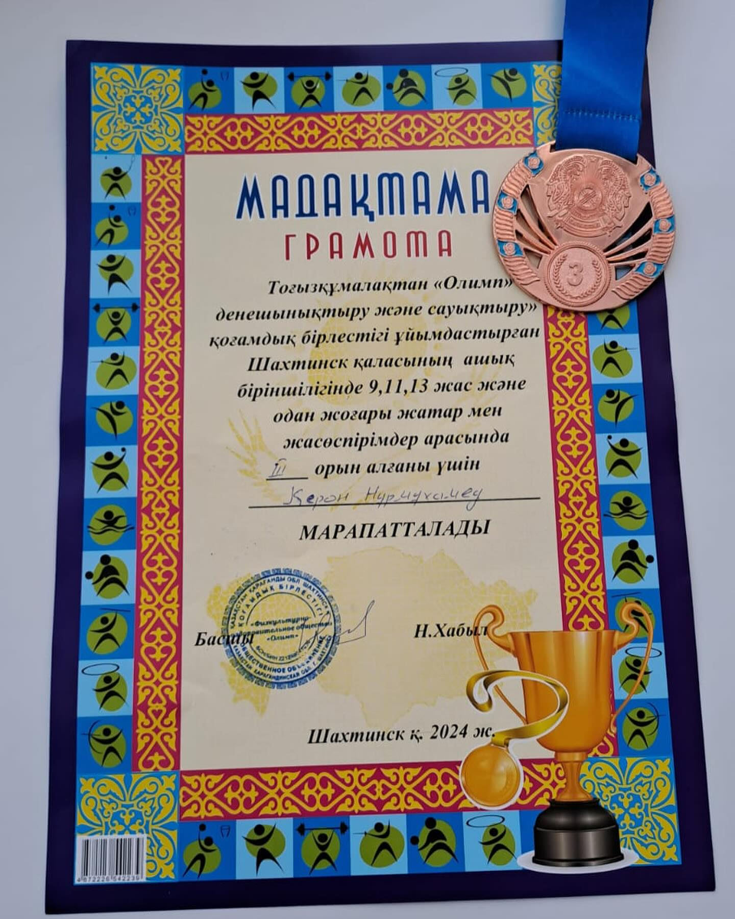 2024 жылдың 20 қаңтар күні Тоғызқұмалақтан “Олимп” денешынықтыру және сауықтыру” қоғамдық бірлестігі ұйымдастырған Шахтинск қаласының ашық біріншілігінде 9,11,13 жас және одан жоға…
