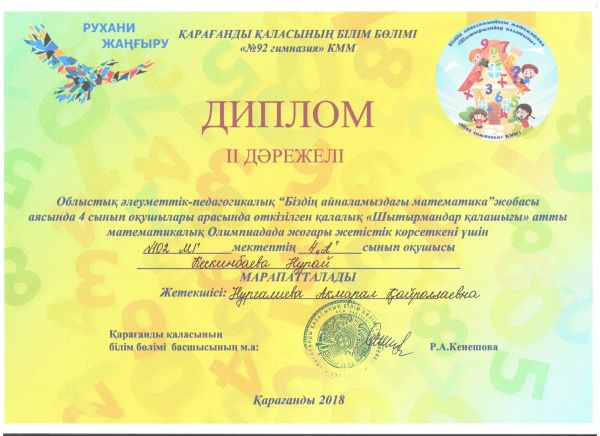 15 қаңтар айында Қарағанды қаласының №92 мектеп-гимназиясында өткен Облыстық әлеументтік-педагогикалық «Біздің айналамыздағы математика» жобасы аясында 4 сынып оқушылары арас…