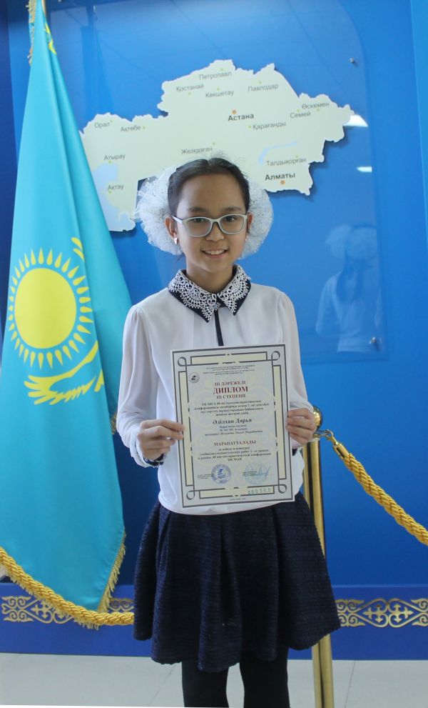 15.01.2018ж. ОҚ ШҒА 48- ші ғылыми – практикалық конференциясы шеңберінде өткен 1- ші деңгейлі оқу – зерттеу жұмыстарының байқауында 6 “В” сынып оқушысы Әділхан Дарья III деңг…