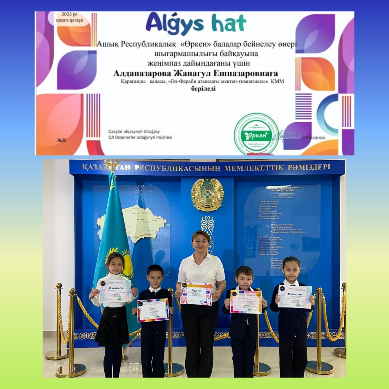 Мектебіміздің 6 "Д" сынып оқушысы Жанат Олжас ҚР мәдениет және ақпарат министрлігінің арнайы алғыс хатымен марапатталды.