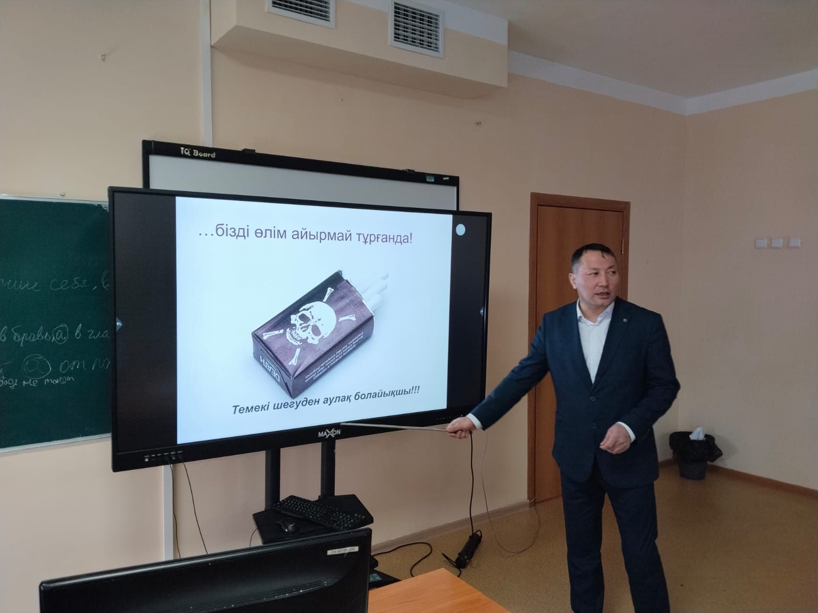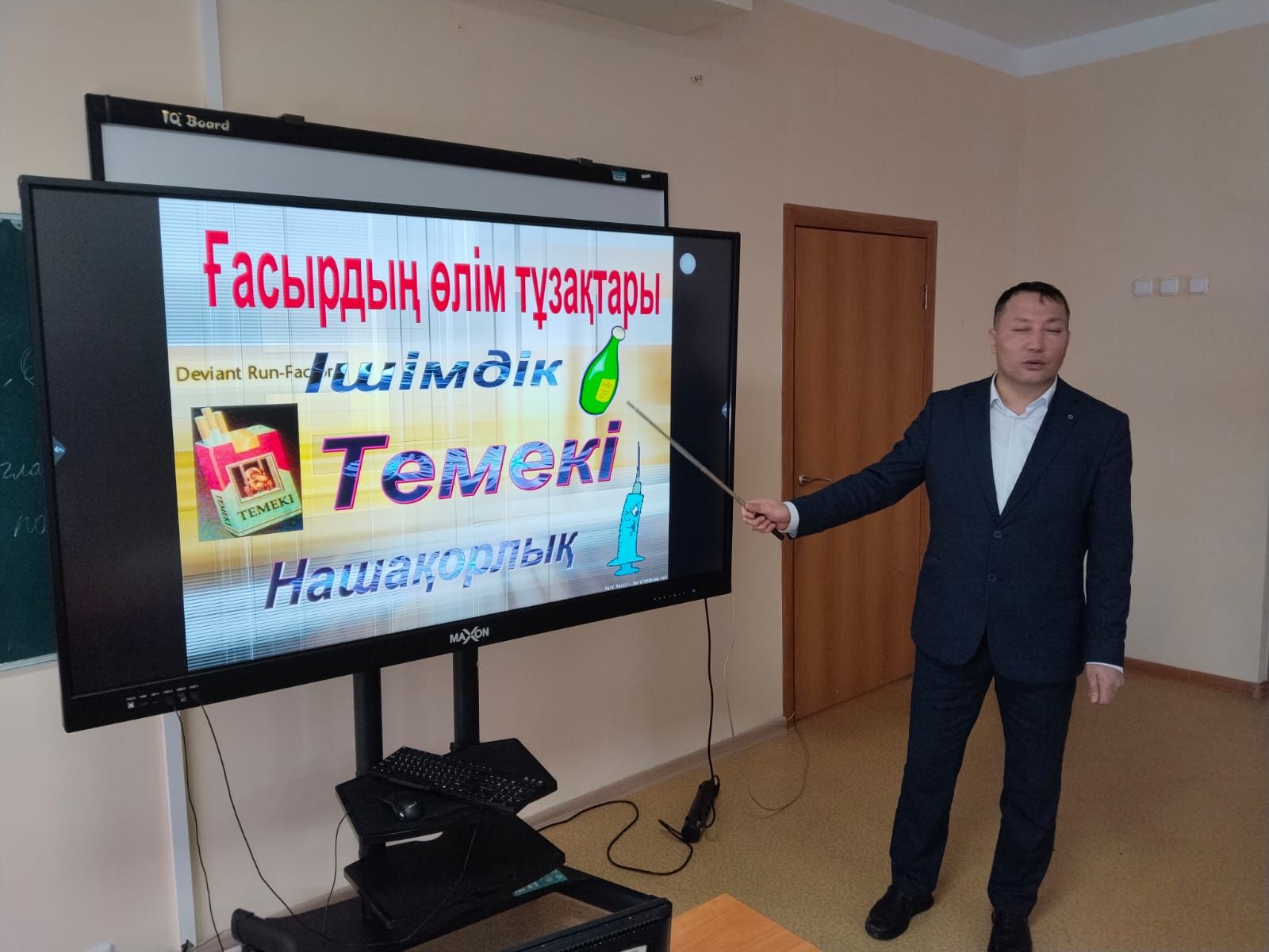 "Құқықтық сауаттылық" апталығы аясында "Әл-Фараби атындағы мектеп-гимназиясы" КММ-де 9 сынып оқушылармен "Ғасырдың өлім тұзағы" тақырыбында танымдық сабақ өткізілді.