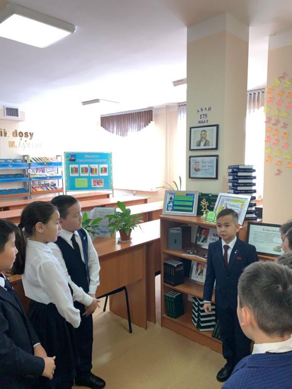 24 қаңтар күні кітапханада Ұлы Абайдың 175 жылдығына орай 3 Ғ сынып оқушыларымен «Абай – дара, Абай – дана қазақта!» атты кітап көрмесіне шолу ұйымдастырылды.