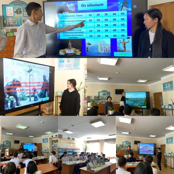 Кітапханада 17 ақпан күні "Қарағанды - біздің қаламыз" тақырыбында 9 В сынып оқушыларымен интеллектуалды ойын өтті.