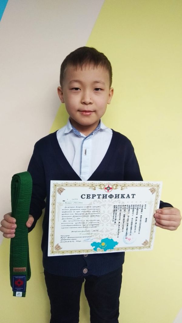 4 "В" сынып оқушысы Камал Асылжанға киокушинкай каратэнің әдіс-тәсілдерін сәтті меңгергені үшін 3-дәрежелі Кю сертификаты берілді.