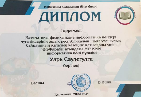 Астана қаласында 2022 жылдың 2 қарашасы FOC-R ашық халықаралық турнирінде дарынды балаларға арналған ментальды арифметика жарысынан 5 "Ғ" сынып оқушысы Қайрулла Нұрдәулет 2 орын алды! Құтт…
