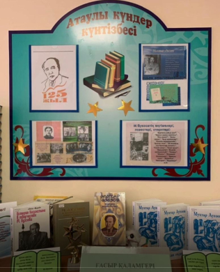 К 125-летию со дня рождения М.Ауэзова в библиотеке экспонировано книжная выставка , читателей ознакомили с биографией и