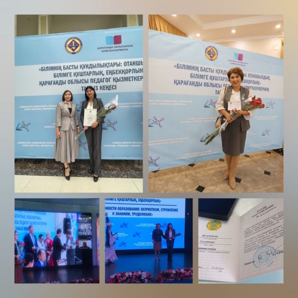 Управлением образования Карагандинской области на августовском совещании от министра образования и науки РК за вклад в развитие системы нравственного и духовного образования и воспитания подрастающе…