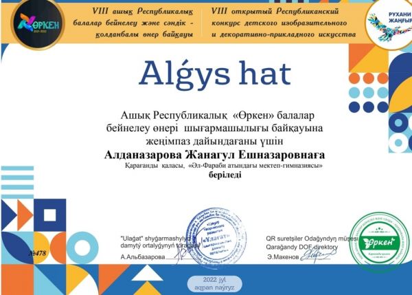 VIII ашық Республикалық "Өркен" балалар бейнелеу өнері шығармашылық байқауының " Менің таңғажайып әлемім", "сәндік-қолданбалы өнер" және "Ғасырларға саяхат" &…