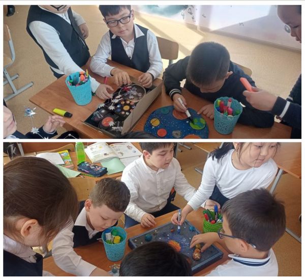 Әл – Фараби атындағы мектеп – гимназиясында 12 - сәуір ғарышкерлер күніне орай 1-11 сыныптарда «Мен ғарышкер боламын», «Ғарыш ғаламаты» атты бірыңғай тәрбие сағат…