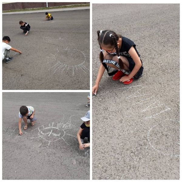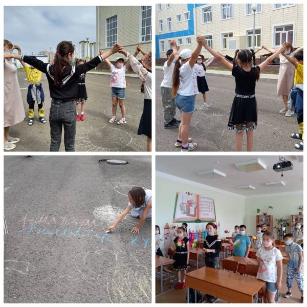 Әл-Фараби атындағы мектеп-гимназиясында "Жазғы мектеп"ұйымдастыруда 1-ші маусым балалар күніне арнап 3-сыныптың 1-ші,2-ші топ оқушылары өз ойларын асфальт бетіне түрлі-түсті бормен әшекейл…