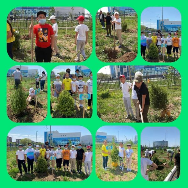 "Әл-Фараби атындағы мектеп-гимназиясы" 2 "Е" сынып оқушылары "Жасыл ел" экологиялық апталық аясында "Бір тал кессең, мың тал ек" акциясын қолдай отырып, мекте…
