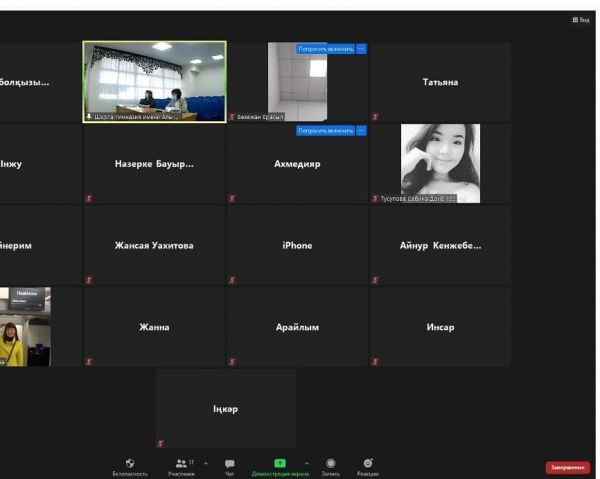 9-шы сынып оқушылары және сынып жетекшілерінің қатысуымен ОШПБ қызметкерлері zoom плотформасы арқылы
