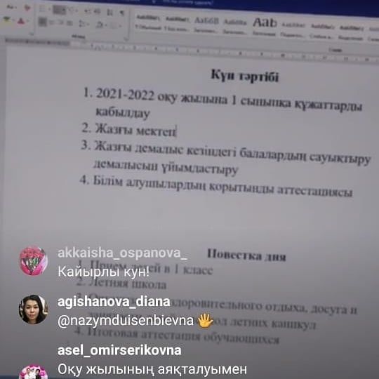 2021 жылдың мамыр айының 20 күні Әл-Фараби атындағы мектеп-гимназиясының директоры Оспанова Кымбат Дауитбековна инстаграм желісінде ата-аналар жиналысын тікелей эфир өткізді. Күн тәртібінде төмендег…
