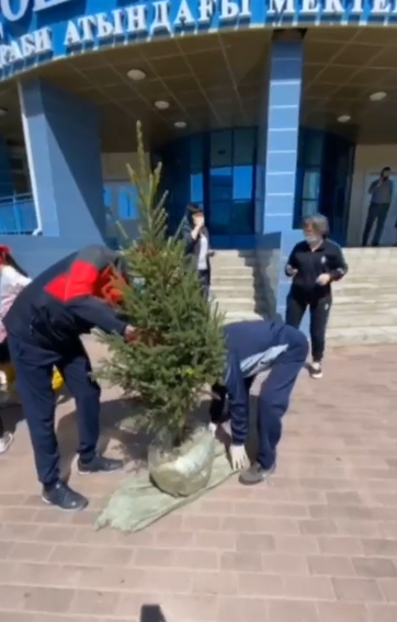 экологиялық акциясы аясында Әл - Фараби атындағы мектеп - гимназия 4 «А» сынып үздік оқушылары ата - аналары атынан мектебіміздің ауласына шырша ағашын отырғыз…