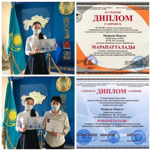 2021 жылдың 8-9 күні сәуір айында "Дарын-2021" ғылыми-тәжірибелік жобада 1-11 сынып оқушылары арасындағы гуманитарлық және жаратылыстану бағыты бойынша өткізілген жобаның нәтижесінде, жүлд…