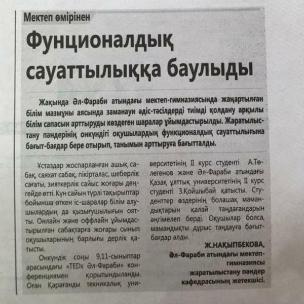 2021 жылдың 11-наурызында “Ұшқыр ой алаңы” оқушылар арасында Республикалық дебат турнирінің қалалық кезеңінде жалғастырушылар лигасында 3 орын иеленген жеңімпаздары Әл-Фараби атындағы ме…
