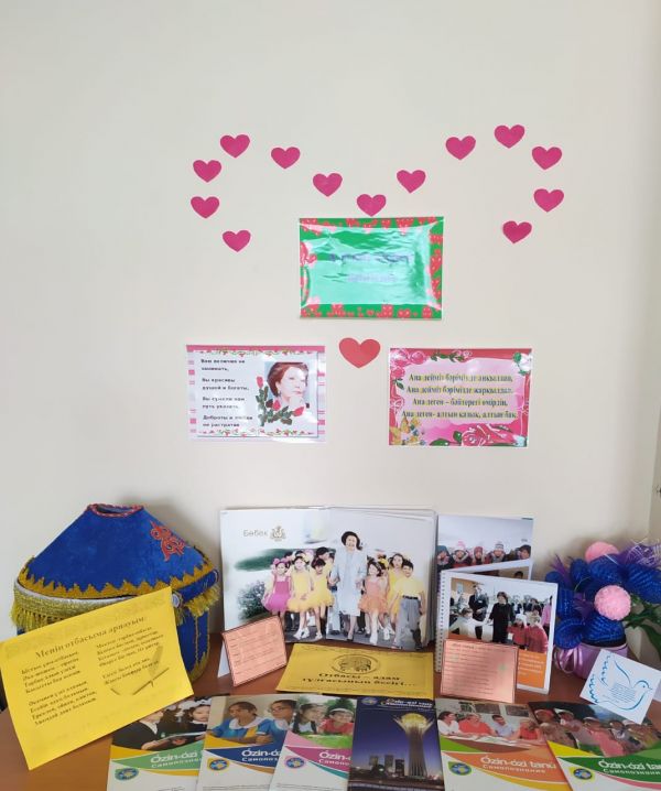 "Махаббат пен шығармашылық педагогикасы" онкүндігінің жоспарына сәйкес кітапханада "Алтын жүрек анамыз" атты кітап көрмесі ұйымдастырылды.