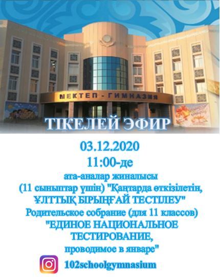 ата-аналар жиналысы (11 сыныптар үшін) "Қаңтарда өткізілетін, ҰЛТТЫҚ БІРЫҢҒАЙ ТЕСТІЛЕУ"