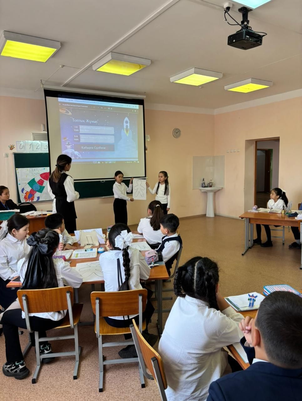 “Бастауыш сынып пәндерінде құндылыққа бағытталған білім беру” тақырыбы бойынша 10.04 күні 4”Г” сыныбында әдебиеттік оқу пәнінен “Ғарыш жолы жалғасады” тақырыбымен ашық сабақ өтті. Сынып жетекші: Шадетова Б.С.