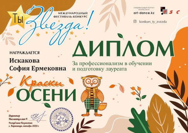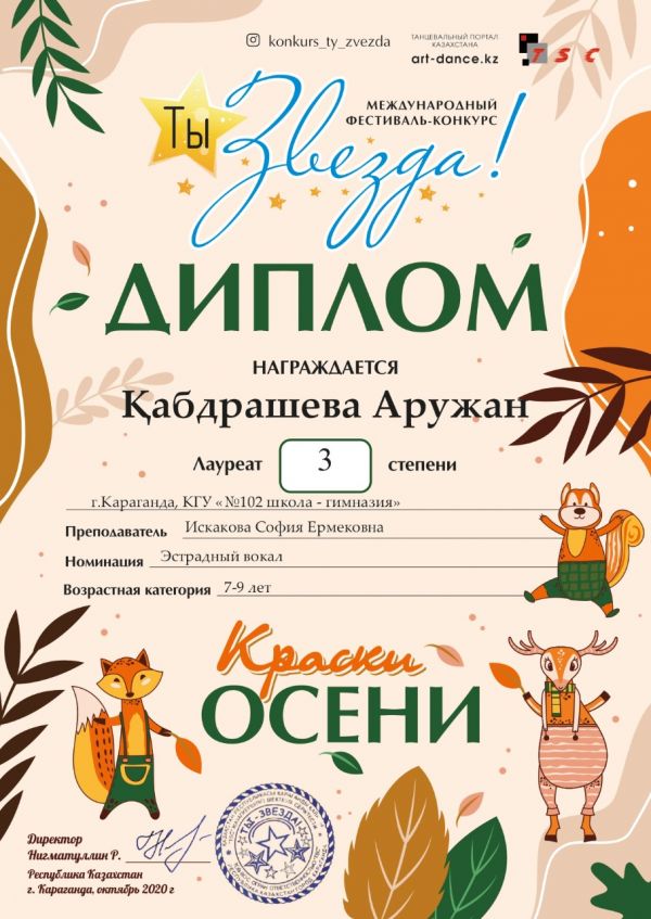 2020 жылдың қазан айының  26 сы ТОО «TSC» және  « www.art-dance.kz»  Халықаралық ән – би порталының  ұйымдастыруымен, Халықаралық «Сен - жұлды…