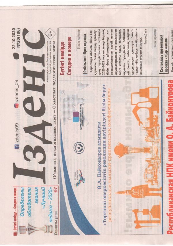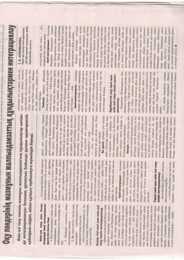ҚАРАҒАНДЫ ҚАЛАСЫ," #102 мектеп -гимназия" КММ  өзін-өзі тану мұғалімі Илимбаева Гулайман Батталовна облыстық педагогикалық ІЗДЕНІС газетіне "ОҚУ пәндерінің мазмұны жалпыадамзатты…