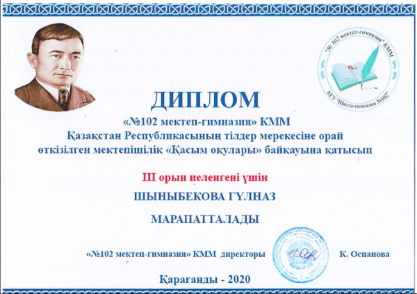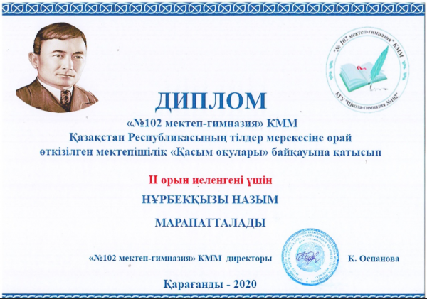 "102 мектеп - гимназия"КММ 8-ші "В" сынып оқушысы Қайырбекова Надия