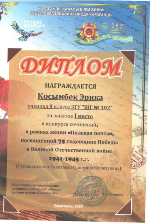 В преддверии великого праздника, 75-ой годовщины  Победы в Великой Отечественной войне,  городской отдел образования города Караганды и общественное объединение ветеранов учителей «Ұ…