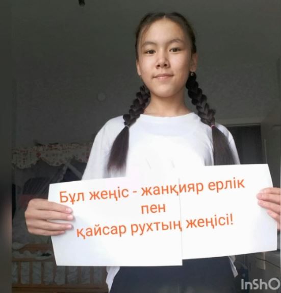 3 „Б” сынып оқушысы Отумбаева Алтынай баршаңызды Ұлы Отан соғысындағы Жеңіске 75 жыл толуымен құттықтайды.