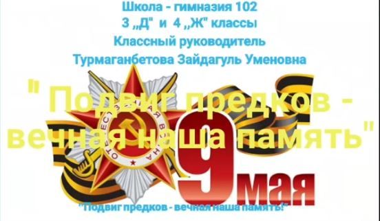 "Подвиг предков - вечная наша память!" Школа-гимназия 102, 3 "Д" и 4 "Ж" классы, классный руководитель Турмаганбетова Зайдагуль Уменовна.
