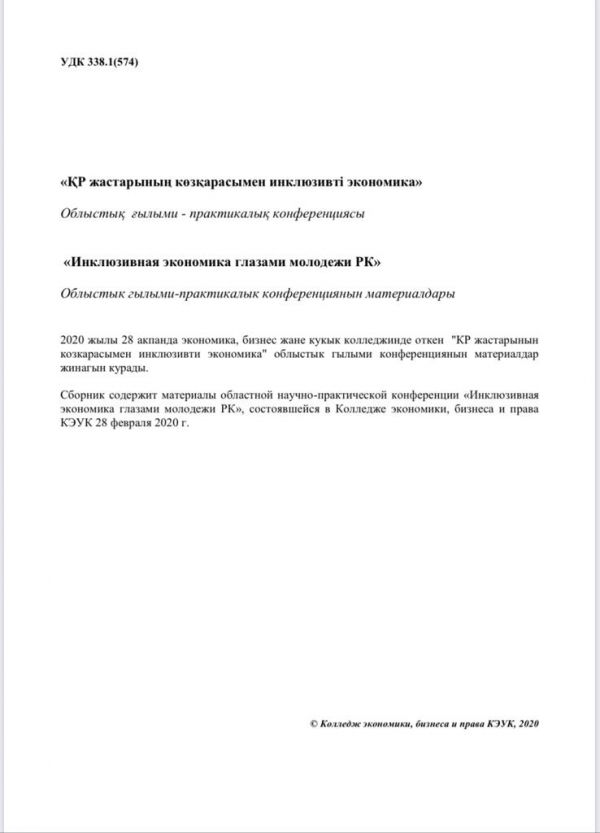 ҚАЗТҰТЫНУОДАҒЫ ҚАРАҒАНДЫ ЭКОНОМИКАЛЫҚ УНИВЕРСИТЕТІ ЭКОНОМИКА, БИЗНЕС ЖӘНЕ ҚҰҚЫҚ КОЛЛЕДЖІ
