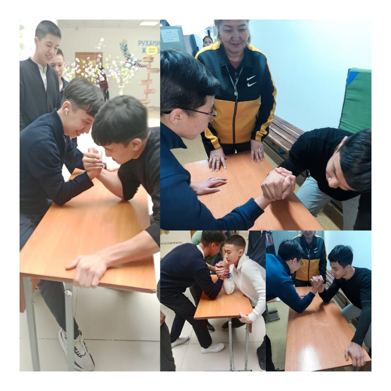 "Эстетика кафедрасының" он күндігі аясында үлкен үзілісте 8-11 сыныптар арасында "Қол күрес" сайысы ұйымдастырылды.