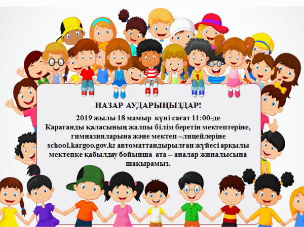 18 .05.2019 года в 11.00 часов на базе КГУ «Школа-гимназия №102» будет организовано собрание для родителей будущих первоклассников 2019-2020 учебного года по теме: «Авт…