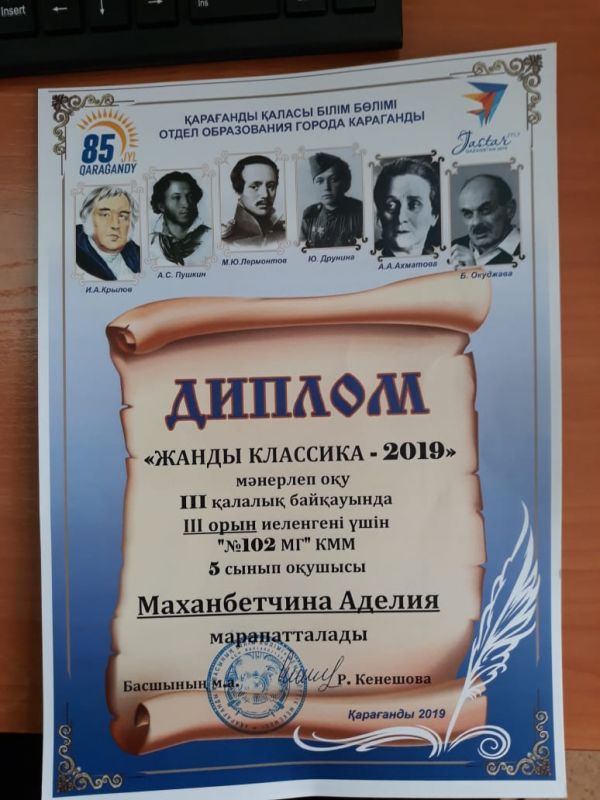 5 В сынып оқушысы Маханбетчина Аделияны Жанды классика коонкурсына катысып 3 орынға ие болды.
