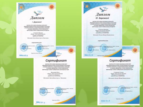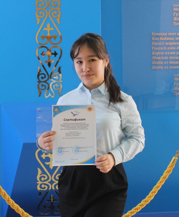 Диплом «Алғырлар - 2018» қалалық байқауының аясында шығармашылық ізденісте құрған инновациялық жобалары үшін 10 «Ә» сынып оқушысы Қусбекова Жаннаға берілді. Жобаның жетек…