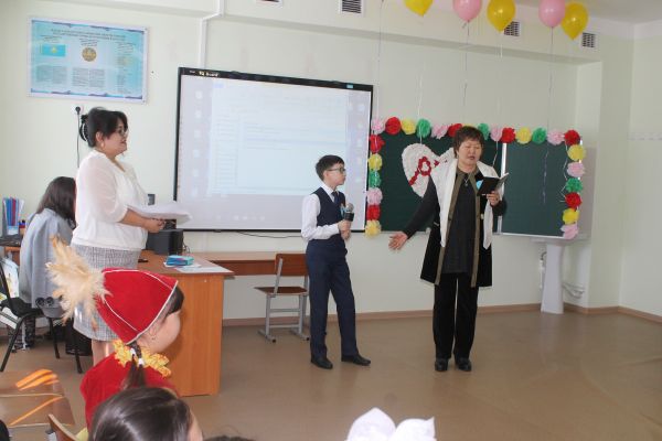 №102 мектеп гимназиясында 1"ә" сыныбында "Ана - өмірдің шуағы" атты сынып сағаты өтті. Оқушылар аналарына арнаған өлеңдерін оқып ,әннен шашу шашты.