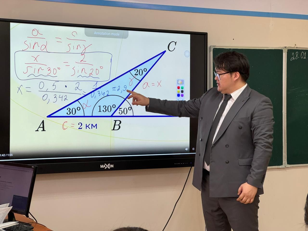 28.01.25 В рамках декады математики и информатики учитель Бектасұлы Данияр провел открытый урок в 9 З классе по предмету геометрия на тему "Решение треугольника. Теорема синусов&quo…