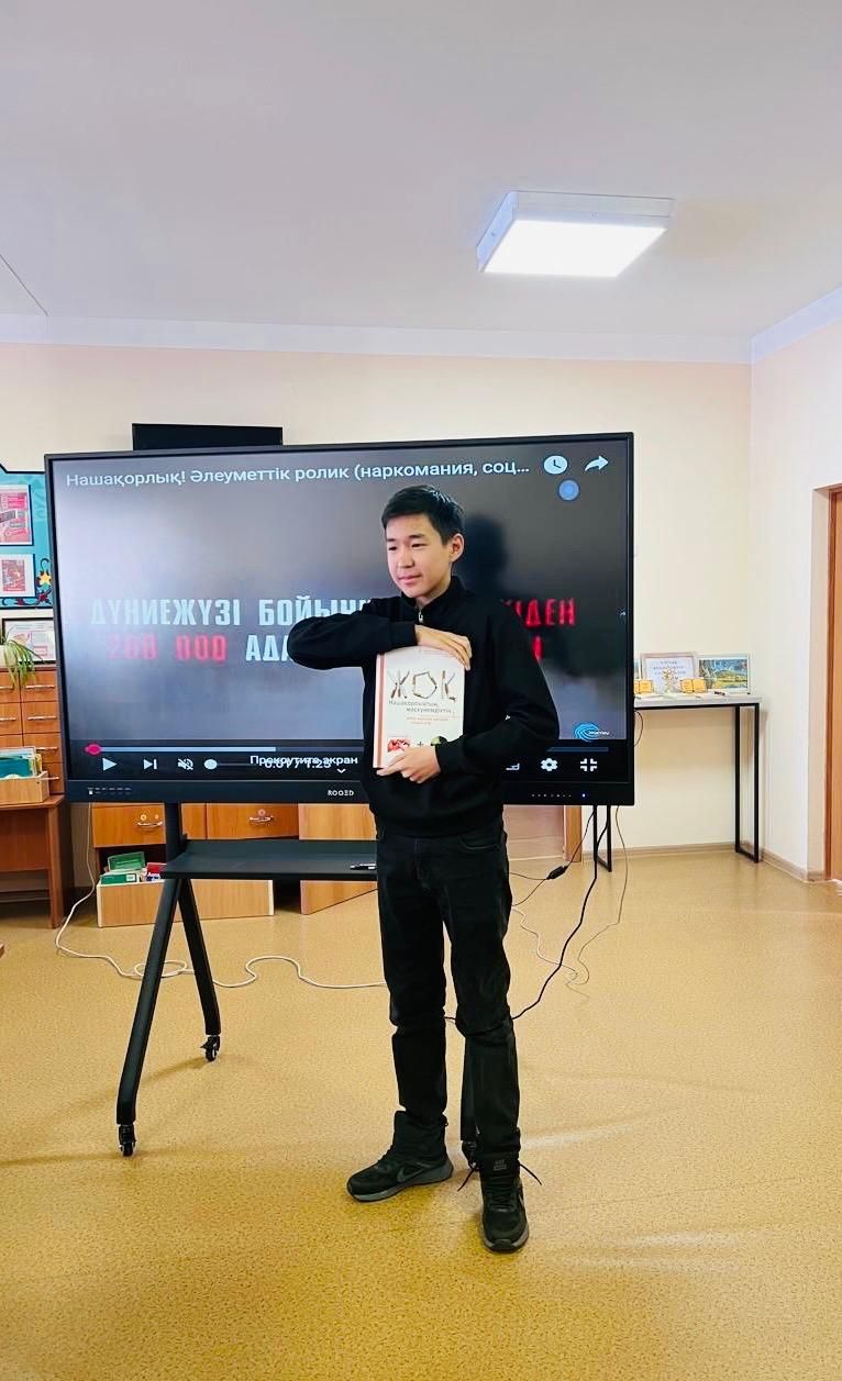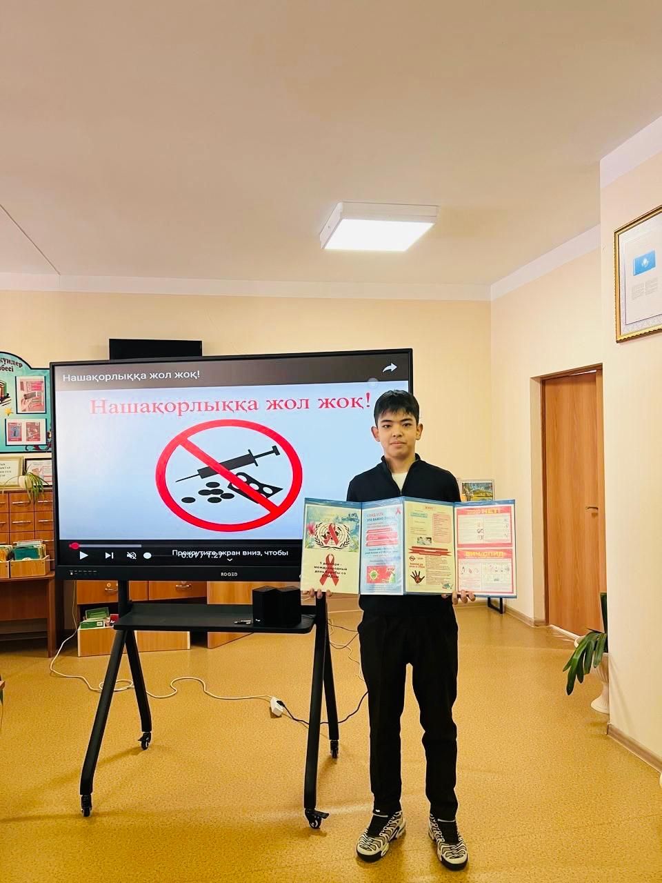 19 қараша күні кітапханада жас ұрпақты зиянкестік нәрселерден сақтану мақсатында “Нашақорлыққа жол жоқ” тақырыбында 9”Г” сынып оқушыларымен түсіндіру жүргізілді.